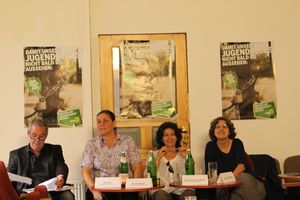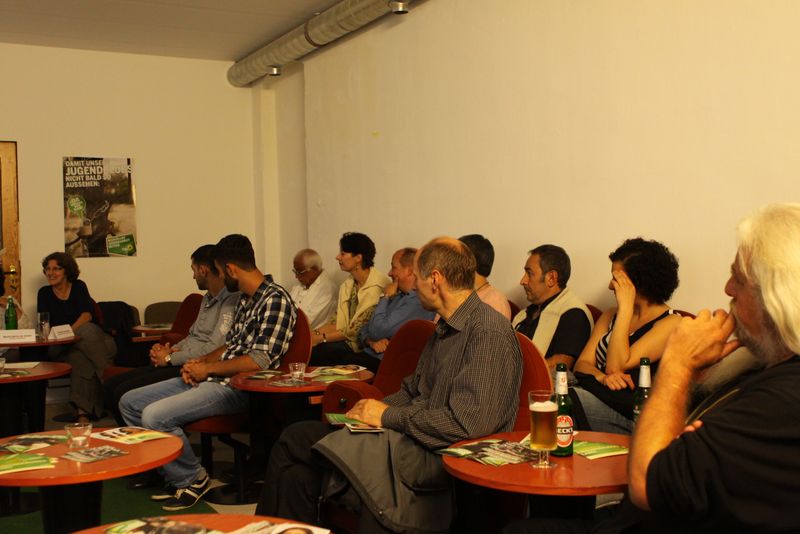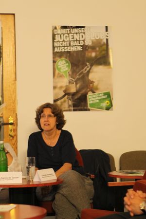 Am Freitag, den 05. August 2011 fand ab 19 Uhr in der <link http: aky-lounge.com external-link-new-window>aky-lounge in der Tellstr. 10 eines unserer Kiezgespräche statt. Thema war die aktuelle Situation der Jugendarbeit in Neukölln nach den von Bezirksbürgermeister Buschkowsky durchgesetzten <link internal-link>willkürlichen Kürzungen und Haushaltssperren im Jugendressort des Bezirksamtes. Neben unserer Abgeordneten <link internal-link internal link in current>Anja Kofbinger, die die Veranstaltung moderierte, saßen Martha Galvis-de Janzer (Leiterin des <link http: www.fusionstreet.com external-link-new-window>Jugendclubs MANEGE), Ralf Gilb (<link http: outreach6.mysnip-solutions.de external-link-new-window>Outreach - Mobile Jugendarbeit Neukölln) und <link internal-link>Gabi Vonnekold (Jugendstadträtin Neukölln) auf dem Podium. Zusammen mit ca. 30 weiteren Teilnehmer_innen und direkt Betroffenen diskutierten sie über die Folgen, die diese Kürzungen für die verschiedenen Jugendeinrichtungen - und vor allem für die Jugendlichen in den Kiezen - haben.