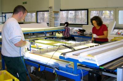 Während einer Führung erklärte Therese Raatz, im Unternehmen für die Öffentlichkeitsarbeit verantwortlich, sehr kompetent den gesamten Produktionsablauf von der Gewinnung der Quarzsande bis zum Leistungstest der fertigen Module. Dabei erzielt ein Standardmodul eine Leistung von ca. 200 Watt p (dies ist die Leistungseinheit von Solarmodulen) bei einer Effektivität von ca.15 Prozent.
