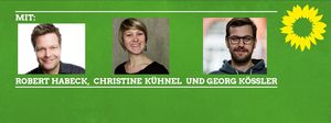 Georg Kössler, Klimaaktivist und Grüner Direktkandidat für die Abgeordnetenhauswahl im Wahlkreis 3, lädt am 12. August zum Kiezgespräch, um mit Robert Habeck (Grüner Energiewendeminister Schleswig-Holstein) und Dr. Christine Kühnel (BUND Berlin) unter dem Motto "Berlin macht Energiewende – wer macht mit?" drüber zu diskutieren, was in Berlin möglich ist.