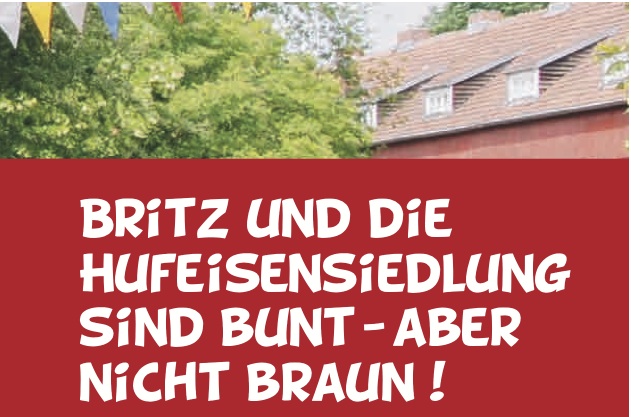 Unter dem Motto „Britz und die Hufeisensiedlung sind bunt - aber nicht braun!“ rufen wir dazu auf, uns am 20. Dezember um 16:15 Uhr im Innenring des Hufeisens zu treffen.