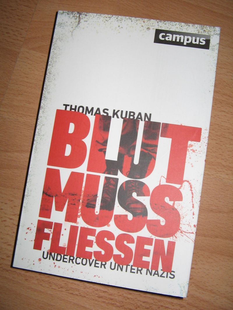 Die Veranstaltung am 05. Juni 2013 im DGB-Haus war nicht öffentlich beworben worden, Einladungen wurden nur an Mitglieder ausgewählter Zielgruppen wie z.B. Gewerkschafts-Vertrauensleute oder Bündnisse gegen Rechts als persönliche E-Mails versandt. Und das aus gutem Grund: Der Inhalt dieser Buchpräsentation plus Filmvorführung war von einer solchen Brisanz, dass eine öffentliche Bewerbung die Sicherheit der Veranstalter_innen und Besucher_innen hätte gefährden können. Es ging um die jahrelangen Recherchen eines Journalisten mit dem Pseudonym Thomas Kuban, der in der rechtsextremen Musikszene recherchiert und hierzu ein Buch mit dem Titel "Blut muss fließen" verfasst hatte. Der Autor stand nach der Vorführung des gleichnamigen Dokumentarfilms von Peter Ohlendorf für Fragen und Diskussionsbeiträge zur Verfügung – nicht persönlich, sondern per Telefon, aus Sicherheitsgründen, schließlich hatte er im Laufe der Jahre schon etliche Morddrohungen aus der rechtsextremen Szene erhalten.