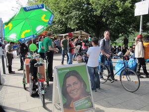 Jeden Dienstag und Freitag ist bekanntermaßen Markt am Maybachufer - und genauso regelmäßig ist unsere Abgeordnete und Direktkandidatin für den Neuköllner Wahlkreis 1 <link internal-link internal link in current>Anja Kofbinger dort anzutreffen.