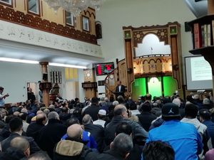 Der Imam der Moschee, Sheik Mohamed Taha Sabri, dankte in seiner Ansprache den Besucher*innen für ihre Anteilnahme, die für die Gemeinde und für Muslime in Deutschland insgesamt von großer Bedeutung ist. Er verwies darauf, dass auch in Berlin Angst unter Muslimen herrsche, dass es hier zu verschärften Angriffen kommen könne und dankte ausdrücklich Innensenator Geisel für die von ihm angeordnete Bewachung von Berliner Moscheen. Seine Gemeinde werde weiterhin am interreligiösen Dialog und am Kampf gegen Antisemitismus, antimuslimischen Rassismus und Menschenfeindlichkeit festhalten.