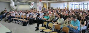 ...hieß es für unsere Abgeordnete Anja Kofbinger am letzten Donnerstag: am 25. August fand von 9:45 Uhr bis 11:15 Uhr im <link http: www.oszimt.de external-link-new-window>OSZ Informations- und Medizintechnik in der Haarlemer Straße in Britz die erste von drei hier angesetzten Podiumsdiskussionen zur Abgeordnetenhaus-Wahl statt. Dabei stellten sich Politiker_innen von verschiedenen zur Wahl antretenden Parteien den Fragen der Schüler_innen. Diesmal ging es um die Themen Schule und Bildung, Integration und Parteien im Allgemeinen, anwesend waren etwa 250 Schüler_innen und Lehrer_innen.