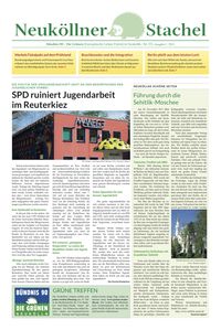 Die aktuelle Ausgabe Nr. 175 des Neuköllner Stachel ist erschienen - diesmal mit den Schwerpunkten Europa in der Krise, Situation der Musikschullehrer_innen, Verkehrspolitik und wie immer vielen Berichten aus Neuköllner Politik und Alltag.