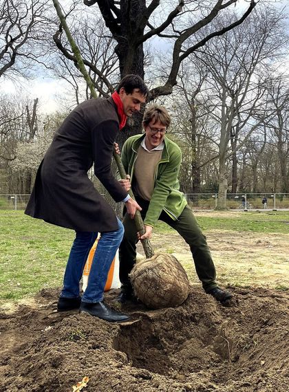 Der erste Schritt war es, die vorhandene Vegetation zu untersuchen sowie die Nutzung des Parks zu erfassen. Anfang 2023 wurden dann verschiedene Baumarten, Sträucher und Stauden gepflanzt. Bei den Bäumen haben wir mit unterschiedlichen Grubenformen experimentiert. Unter den heutigen Bedingungen einen Baum zu pflanzen ist viel mehr als nur ein Loch zu graben. Die Kunst ist es, das Wasser zu den Wurzeln zu bringen und gleichzeitig die Bäume anzuregen, tiefer zu wurzeln – damit sie auch längere Trockenperioden aushalten. Wir haben zudem Gräser und Kräuter ausgesät und bodenlockernde Pflanzen ausgebracht. Aktuell pflanzen wir etwa 280 neue Bäume mit den Erkenntnissen aus dem ersten Bauabschnitt. Das ist ein Kraftakt, aber der ist nötig, wenn auch unsere Kinder und Enkel in der Hasenheide noch Schatten finden sollen.