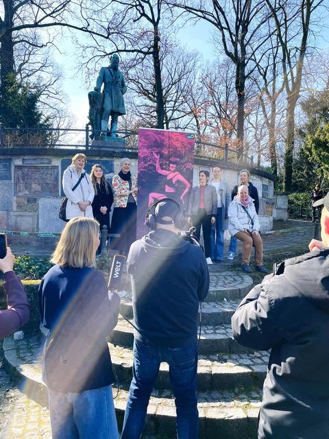 Am nördlichen Eingang der Hasenheide steht bis heute das Denkmal für den „Turnvater“ Friedrich Ludwig Jahn. 1872 eingeweiht, gilt dieser Ort als erster öffentlicher Turnplatz in Deutschland. Doch Jahns Geschichte ist umstritten und darf nicht unkommentiert im öffentlichen Raum bestehen bleiben. Er war nicht nur Wegbereiter der Turnbewegung, sondern äußerte sich offen antisemitisch, frauen- und fremdenfeindlich. Sein Sportverständnis war nationalistisch, Frauen schloss er grundsätzlich von seinem Sport aus. Wir finden: Dieser Ort in der Hasenheide muss neu gedacht und gestaltet werden. Bereits vor drei Jahren startete das „Netzwerk Frauen in Neukölln“ die Initiative, das Jahn-Denkmal neu zu denken – der erste Schritt war damals eine Einwohner*innenfrage an die Bezirksverordnetenversammlung (BVV) Neukölln. Ein entsprechender Antrag wurde im Folgejahr von der Grünen Fraktion in der BVV unterstützt, um eine erinnerungspolitische Debatte mit der Zivilgesellschaft anzustoßen, auch über eine mögliche Entfernung des Denkmals. Im Frühjahr 2025 haben wir als Grüne Fraktion Neukölln gemeinsam mit Bahar Haghanipour (MdA) und Susanna Kahlefeld (MdA) der Debatte mit einer feministischen Enthüllungsaktion neuen Schwung gegeben: gegen rückwärtsgewandte Denkmäler, für ein modernes Verständnis von Sport und Gemeinschaft. Statt Jahn stellen wir Rosl Persson (1908–2010) in den Mittel