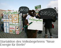 Außerdem soll das Volksbegehren das Stromnetz endlich vom Grundversorger Vattenfall trennen. Denn Vattenfall möchte möglichst viel Kohlestrom in Berlin verkaufen, während der Netzbetreiber die Netze in Zukunft dafür fit machen muss, dass immer mehr Strom aus erneuerbaren Energien in Berlin genutzt werden kann. Eine Möglichkeit dafür ist, dass das Land Berlin das Stromnetz übernimmt und betreibt. Die andere Möglichkeit für eine Rekommunalisierung: Viele Berlinerinnen und Berliner wollen das Stromnetz nicht in die Hände der Großen Koalition geben, sondern es selbst besitzen und betreiben. Das ist das Ziel der „Bürger Energie Berlin“, einer Genossenschaft, die Teile der Rendite aus dem Netzbetrieb wieder in die Energiewende investieren will. Das könnte eine landeseigene Netzgesellschaft nicht, da sie aus den Einnahmen zuerst Zins und Tilgung des Kaufpreises refinanzieren müsste. Aber auch um das Netz schrittweise in Bürger_innenhand geben zu können, muss das Land es erstmal haben. Egal welche Art von Rekommunalisierung: Möglich wird sie erst durch einen Erfolg des Volksbegehrens.
